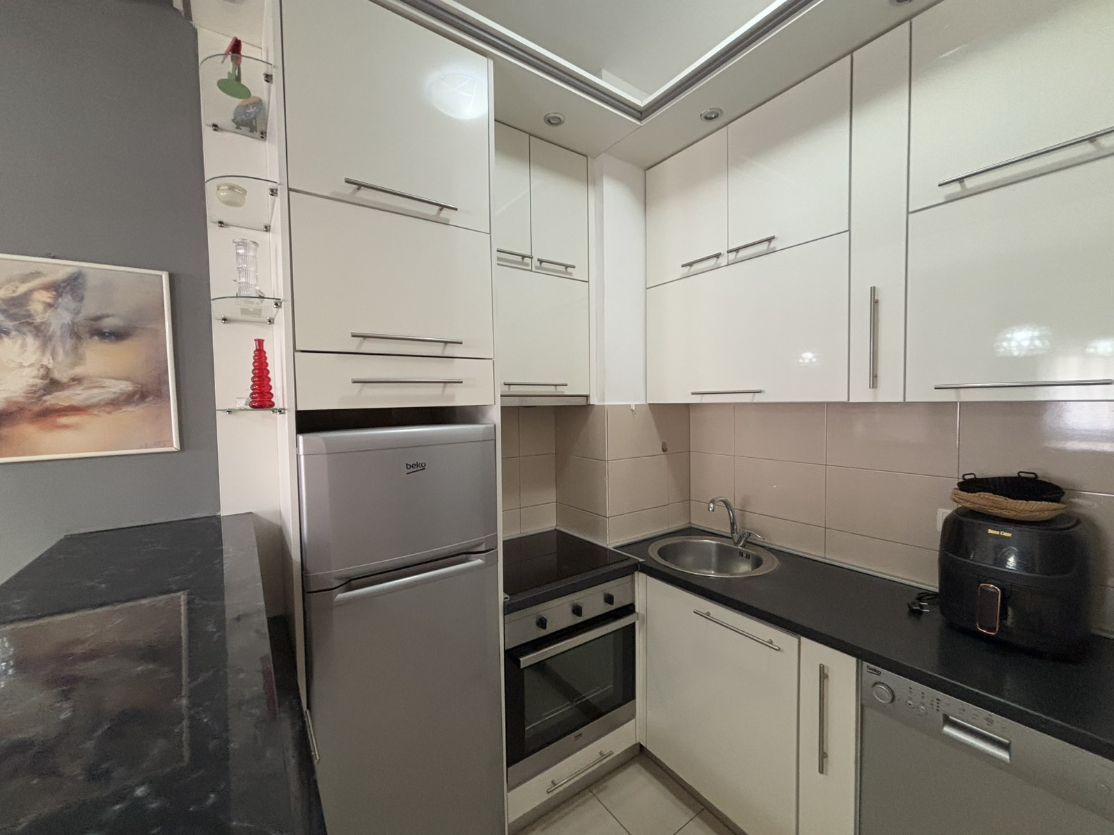 The kitchen is equipped with all the necessary appliances.
