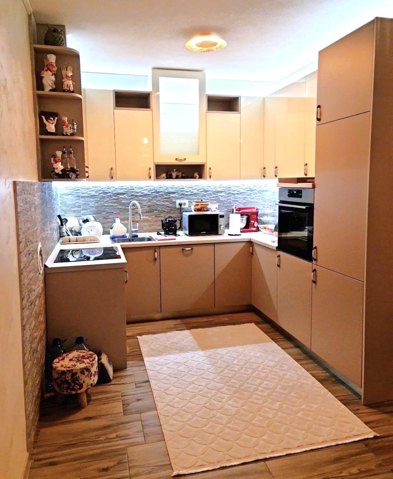 Comfortable and newly furnished, surface area 150 m2. It has a direct connection from the road to the yard.