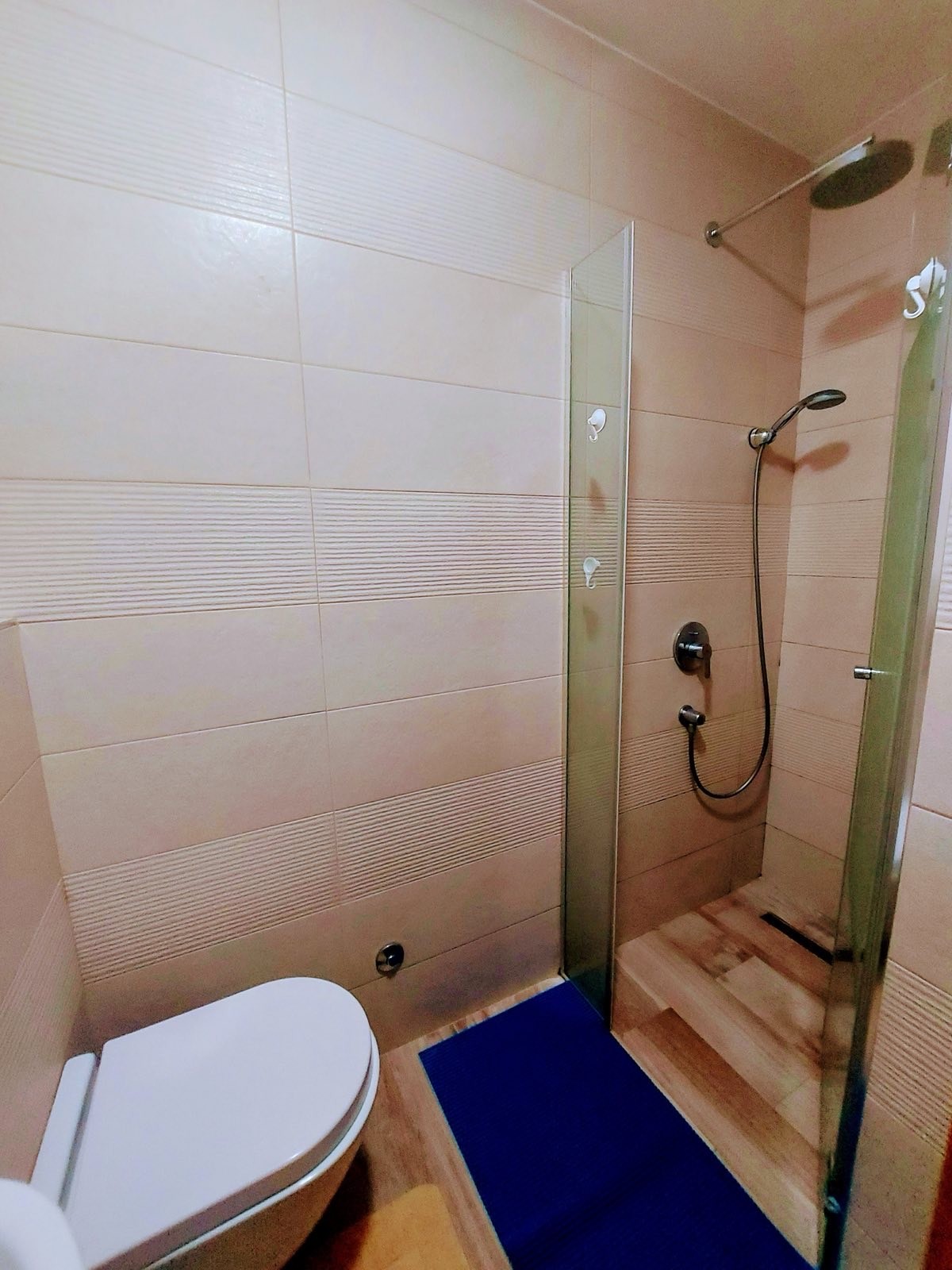 It consists of a hallway, two bedrooms, two bathrooms, living room with kitchen and dining room (open-space concept), terrace.