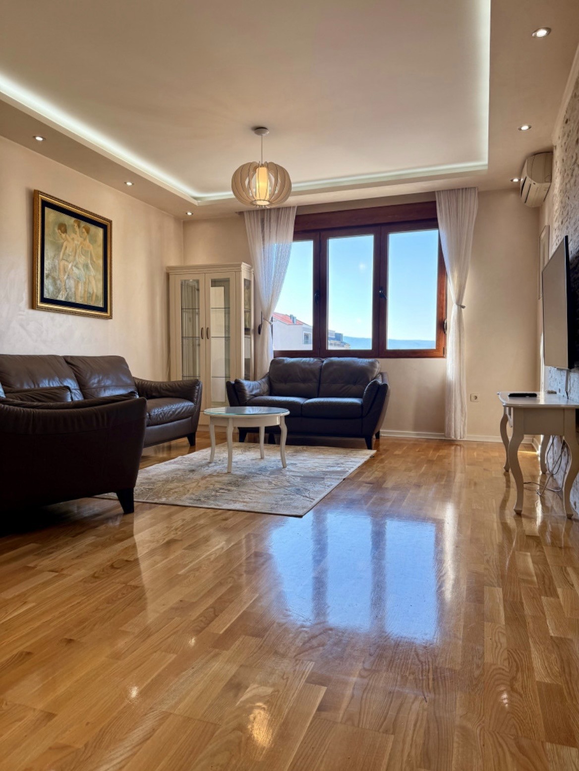 A luxurious and modern furnished two-bedroom apartment 90m2 is for rent in Moskovska street, in the Gloria building, Preko Morače, Podgorica.