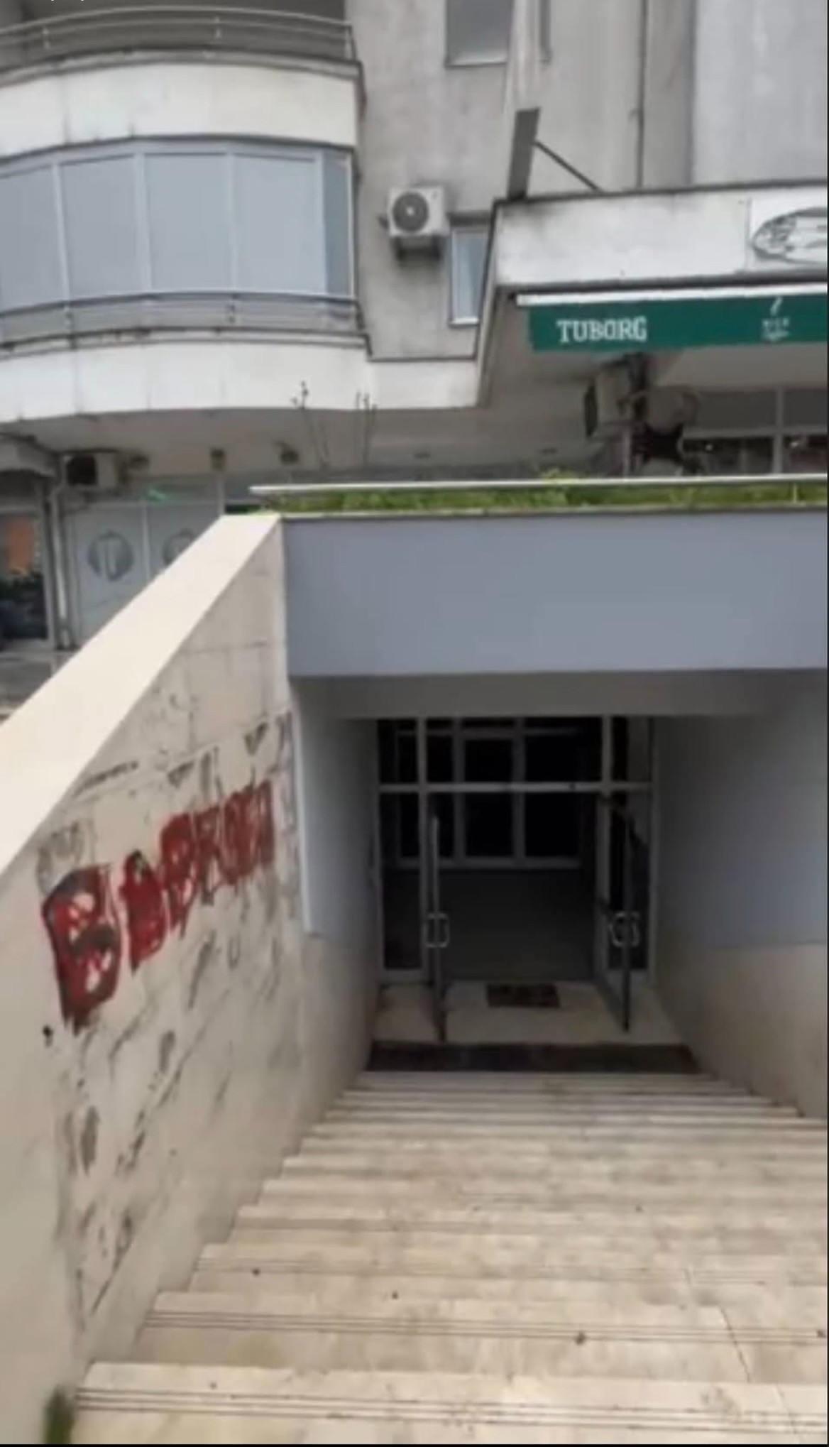The corridor and the entrance to the bar are currently being renovated, and the building is secured by video surveillance.