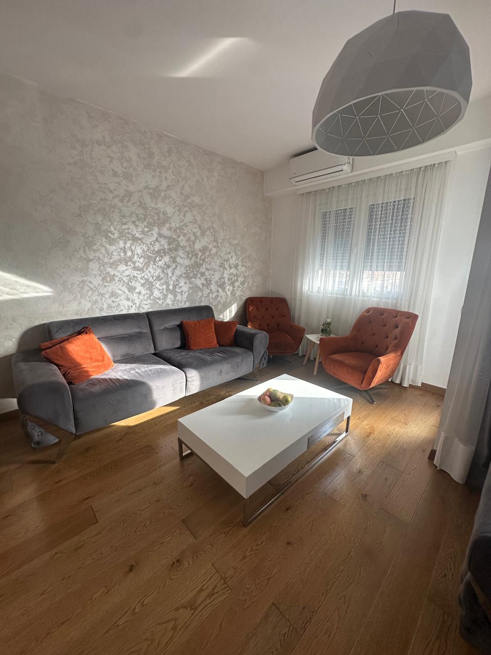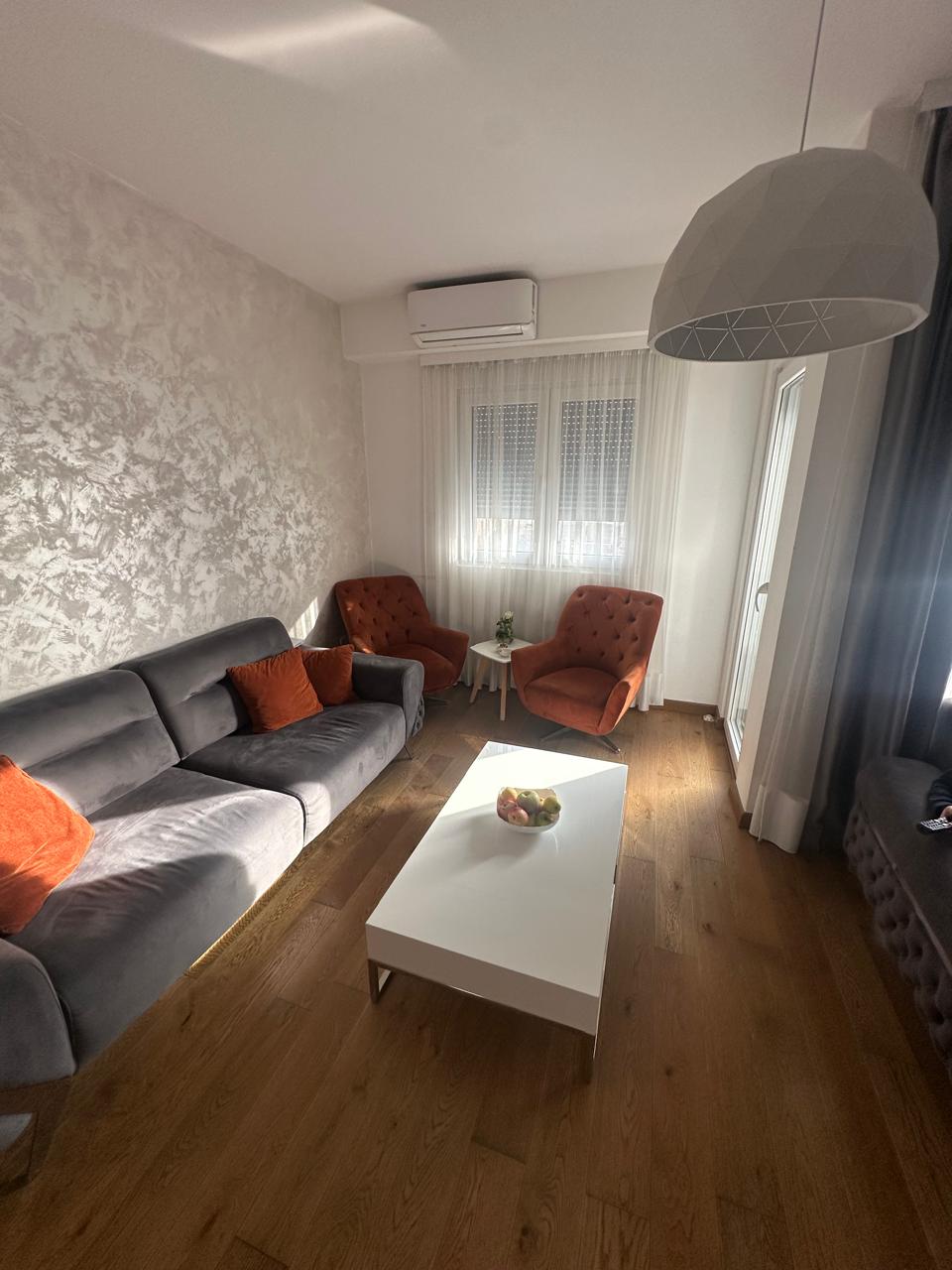 A nicely furnished three-bedroom apartment for sale in Zabjelo, in the Razvrshije building in Podgorica.