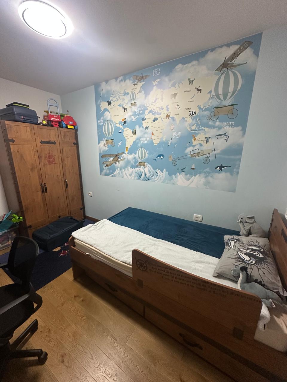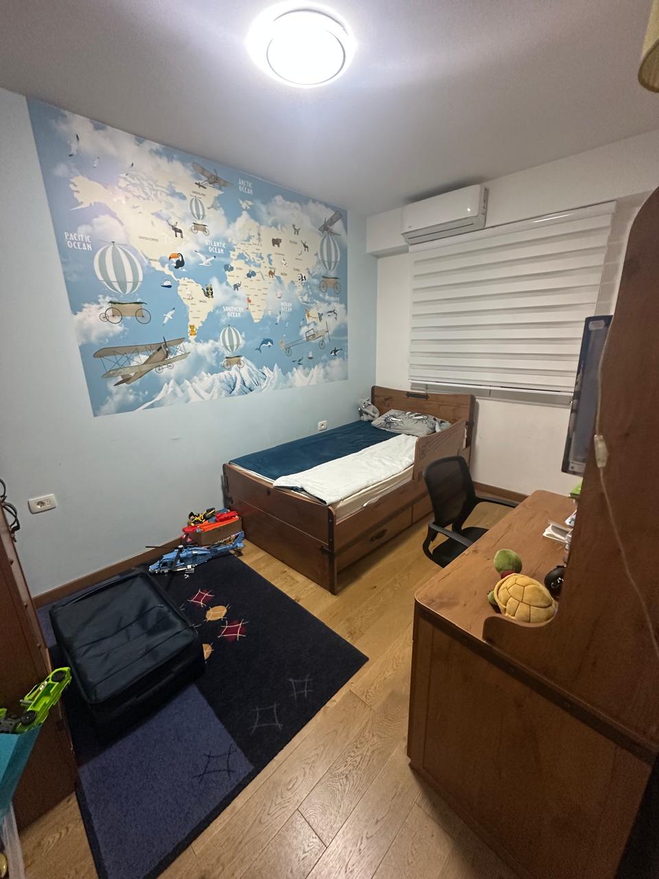 The apartment has a split system, which means that each room has one indoor unit that can heat and cool.