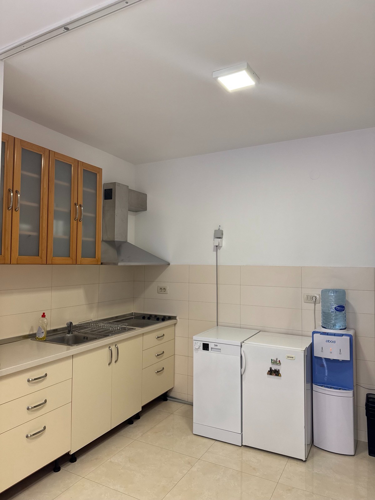 It is equipped with a mini kitchen and a dishwasher.