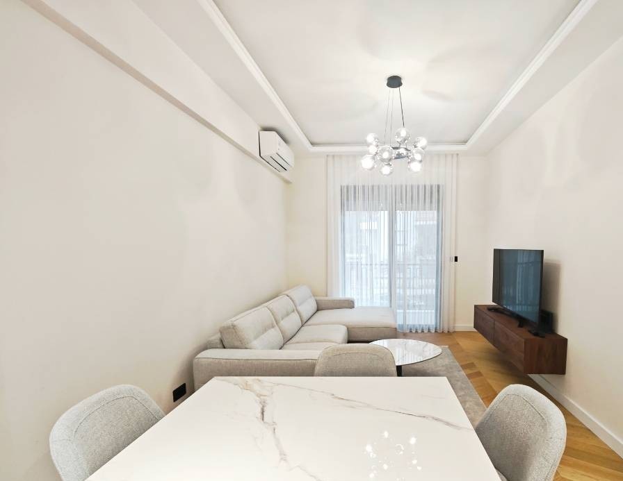 Izdaje se luksuzan, moderno opremljen dvosoban stan površine 60m², smješten na 2. spratu nove, manje, luksuzne zgrade u naselju Gorica C, Podgorica.