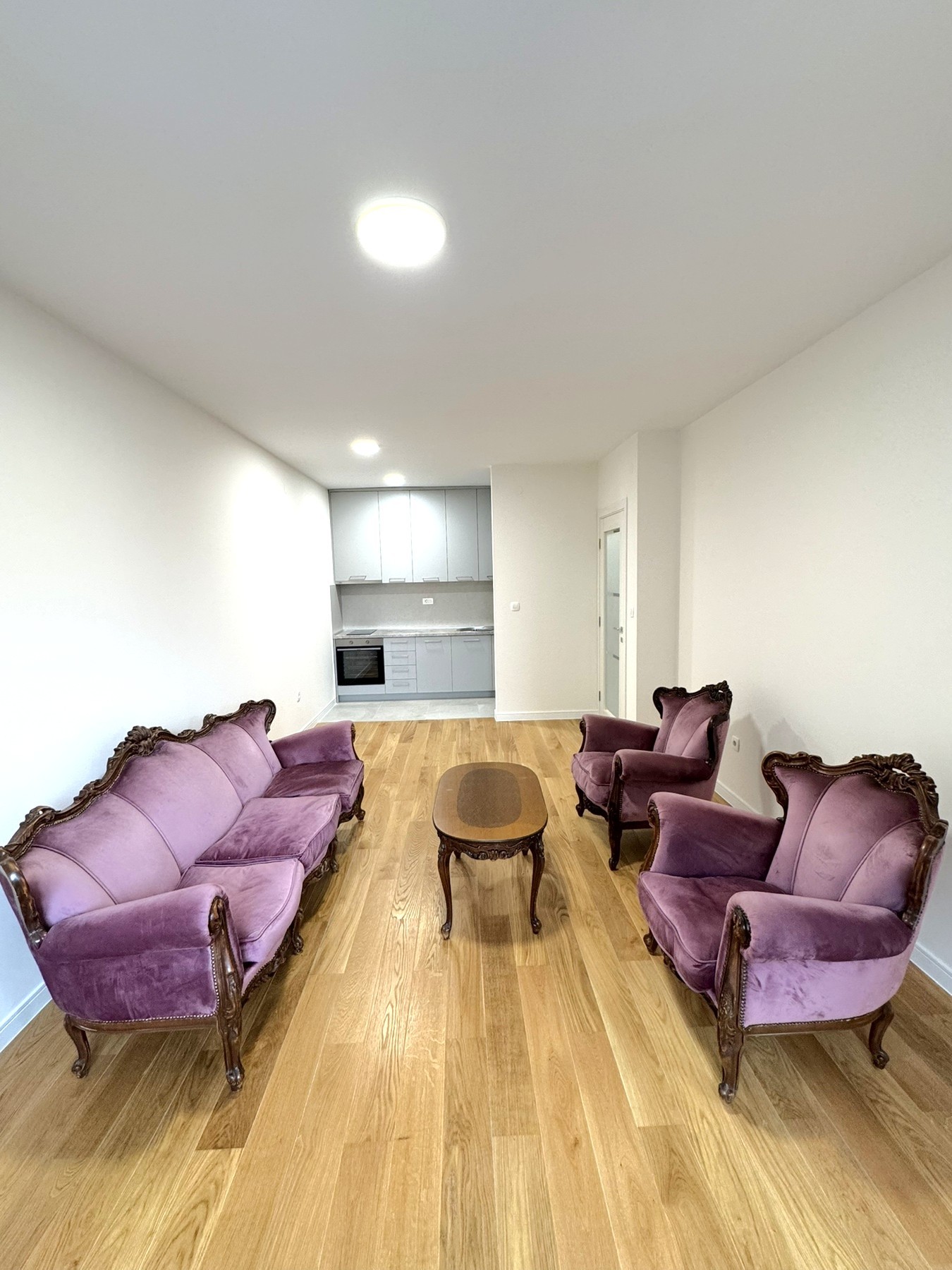 Stan ima opremljenu kuhinju i dnevnu garnituru.