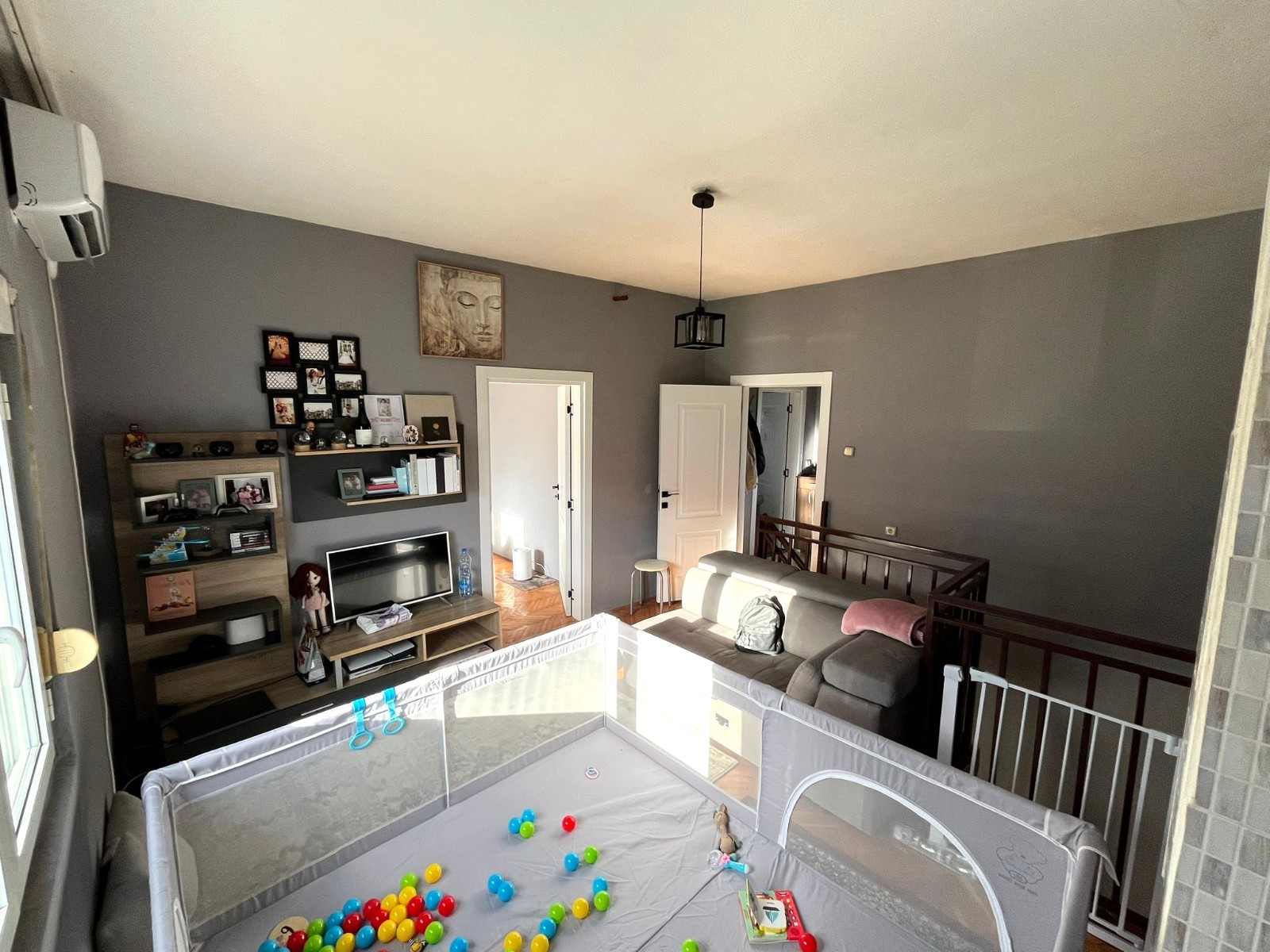 Po principu je duplex stan, sa dvije spavaće sobe.