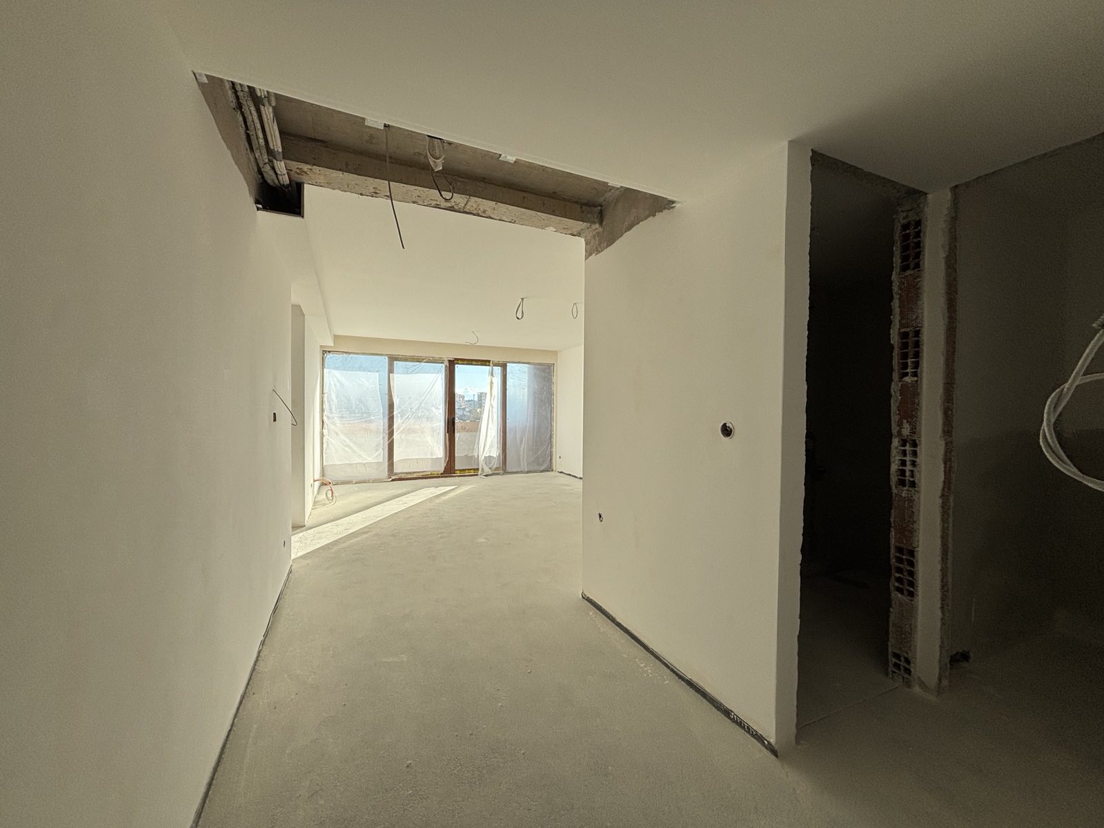 Stan se nalazi na poslednjem spratu manje zgrade koja je gotovo završena.